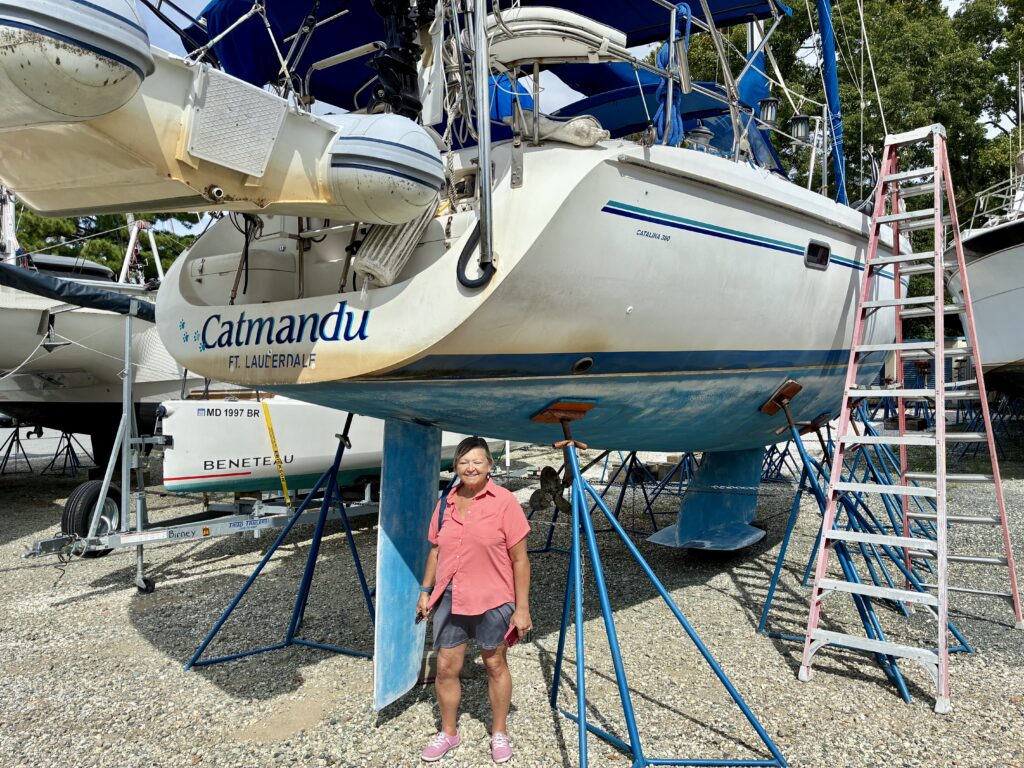 The boat work didn’t start when it should have, and Catmandu (our real home) was still up on stands when we arrived back at the Port Annapolis boatyard. We stayed in a hotel for a week, then moved aboard, entering and exiting via a stepladder to the cockpit.