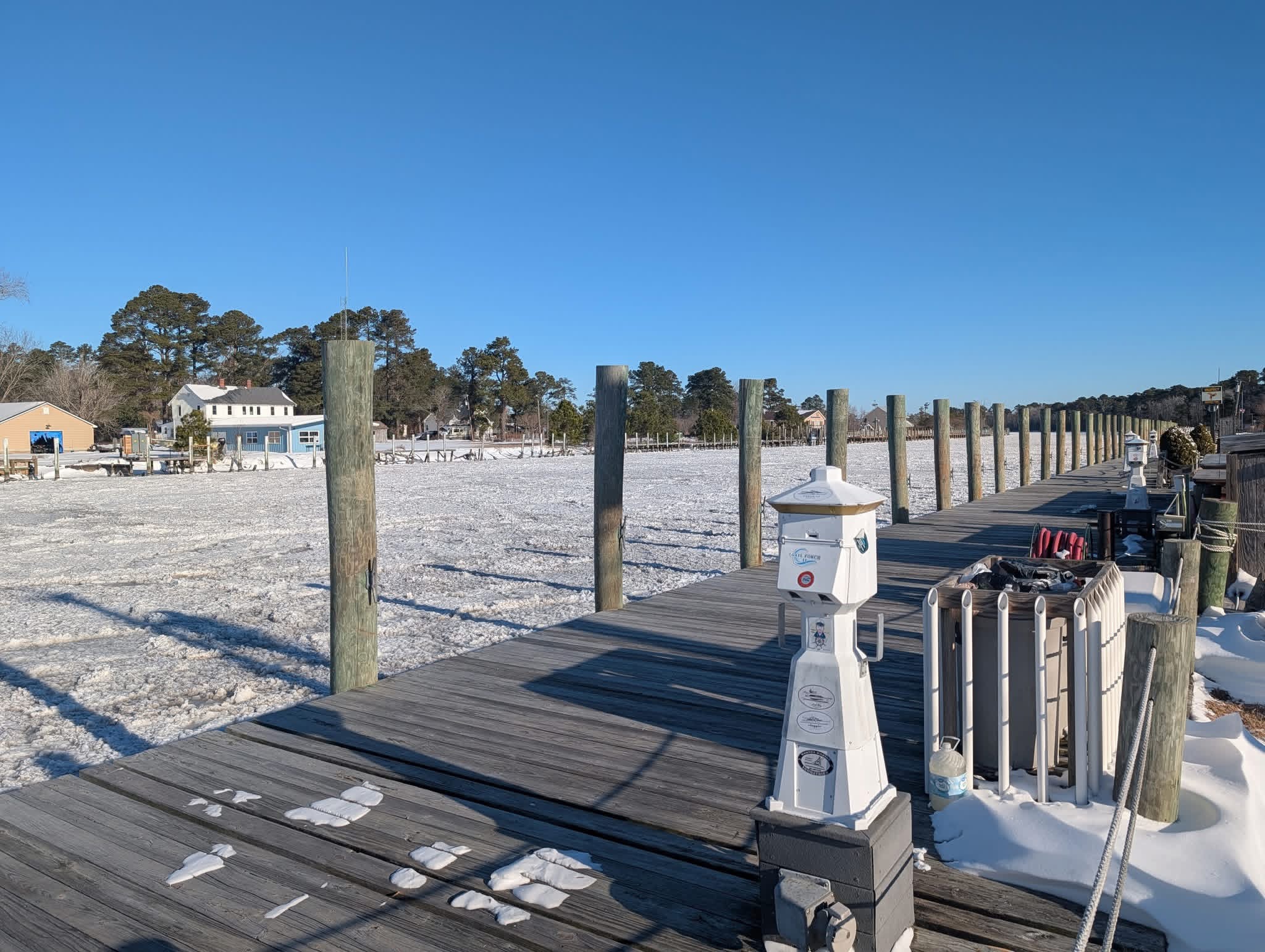Winter chased us through North Carolina and an unseasonable cold dome descended over the deep south. It extended into Georgia and Florida. The ICW at Coinjock was frozen solid, closed until further notice. There we were, waiting in Hilton Head for low temperatures to top 45 degrees. Then one day in January, it snowed.
